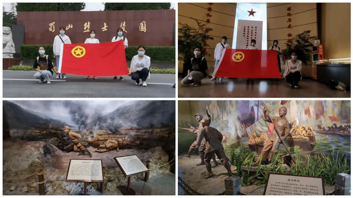 最后,队员们启程前往大蜀山烈士陵园,缅怀为了新中国发展和人民安宁而牺牲的战士。瞻仰烈士陵园纪念碑,学习那段艰苦奋斗的不屈历史;青年大学生通过向烈士墓献花,学习烈士们身为共产党人在革命中的奋斗和付出,体会到当今和平生活的来之不易。最后通过采访陵园工作人员,了解烈士陵园的历史,追溯那个年代的红色记忆,感悟其重要的教育意义。