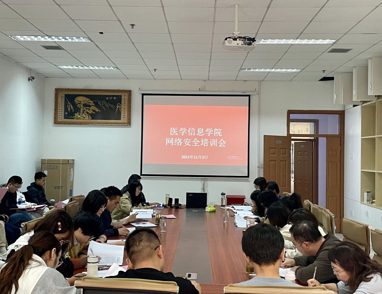 为深入学习习近平网络强国战略思想,推进网络安全和信息化工作,积极响应学校网络安全学习的号召,2021年11月3日下午,医学信息学院在学院会议室召开了网络安全培训会。会议由医学信息学院副院长李祥子主持,全体教职工参加学习。