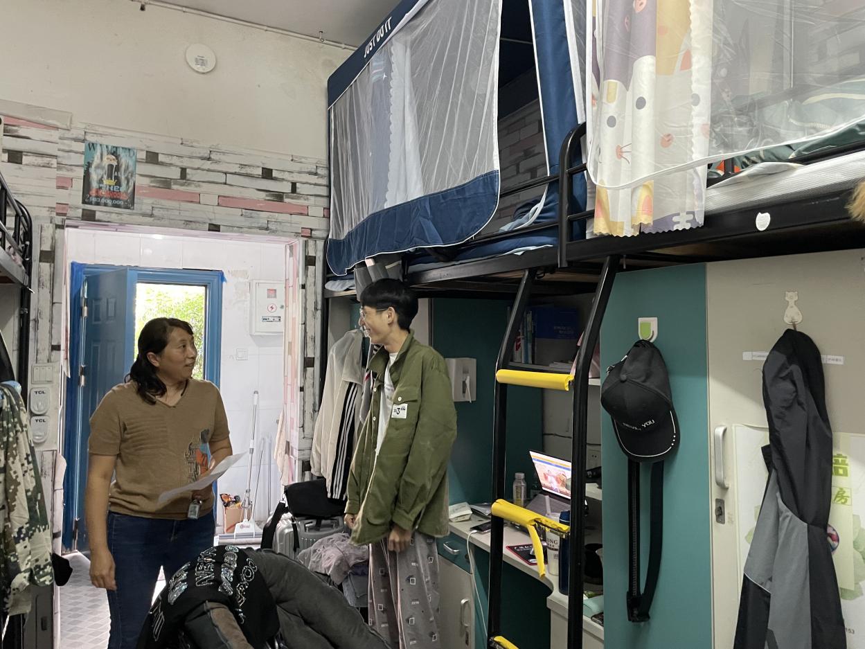 为了解掌握新生思想动态,近期医学信息学院党总支副书记刘影、王颖在新生辅导员李鸿晨的陪同下深入学生宿舍,走访慰问新生。