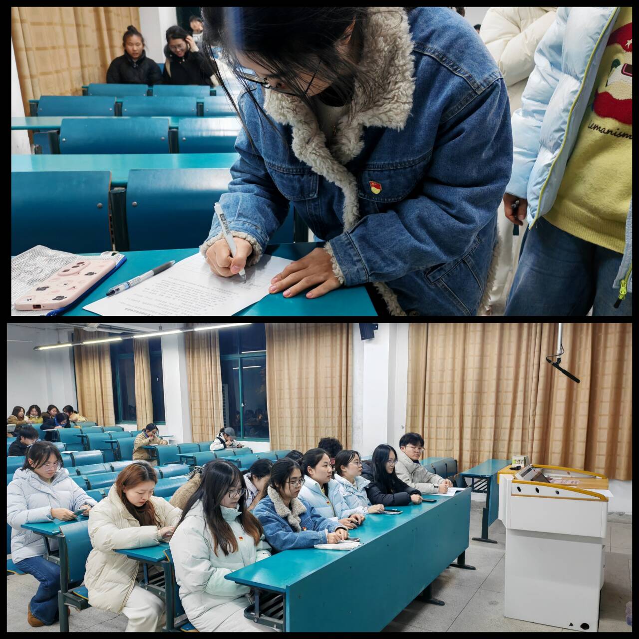 学院党委始终把学生党员教育管理摆在突出位置,以倡议落实为契机,引导学生党员在关键场景主动亮明身份、扛起责任。期末考试期间,全体学生预备党员率先签订《诚信考试承诺书》,全程规范佩戴党员徽章步入考场,以高标准严守考纪、诚信应考,主动接受师生监督,坚决抵制学术不端行为,成为考场中恪守诚信的“排头兵”。这一举措不仅为营造风清气正的考试氛围树立了标杆,更以党员示范引领学风建设走深走实,让诚信治学的理念深入人心。