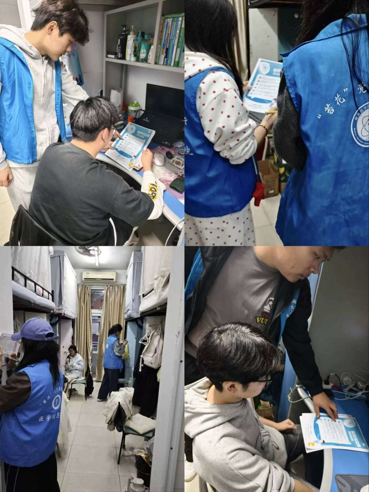为进一步加强宿舍文化建设,筑牢校园春季传染病防控屏障,切实保障学生身心健康,4月11日晚6点,医学信息学院团委组织开展“最美寝室”查寝专项活动,以卫生检查为载体,同步开展春季传染病预防宣传教育,打造安全、文明、健康的宿舍环境。